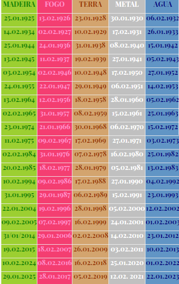 O mês e a data do seu nascimento têm que ser após o início do Ano Novo Chinês do ano correspondente.